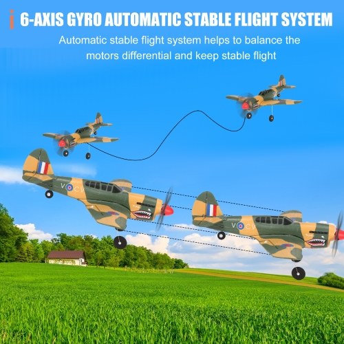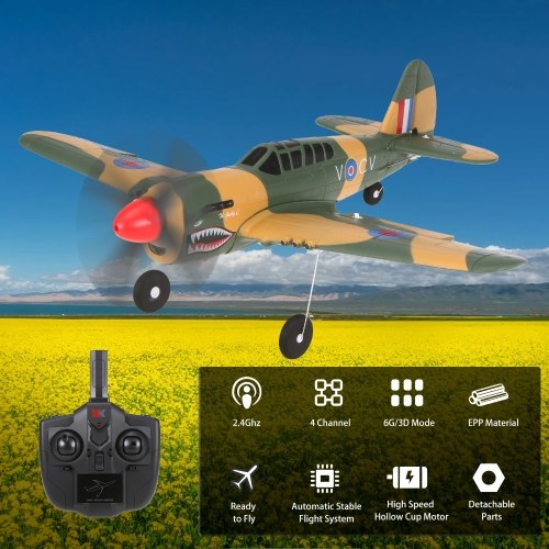 A220-P40 RC Plane is scaled down according to the real P40 fighter plane, four channel design, simple and easy to learn for kids and beginners, the plane is fully assembled and matched, ready to fly, you can fly easily with just a few practice. It's made of new EPP foam material, super lightweight, flexible, smooth and impact resistant. When crushed, the parts will recover quickly. A great choice as a fly toy plane, giving you a more extensive flight experience!