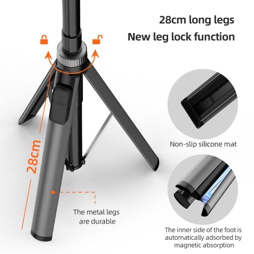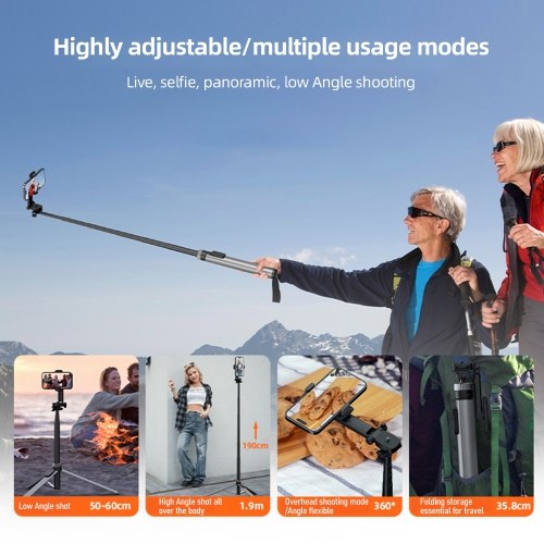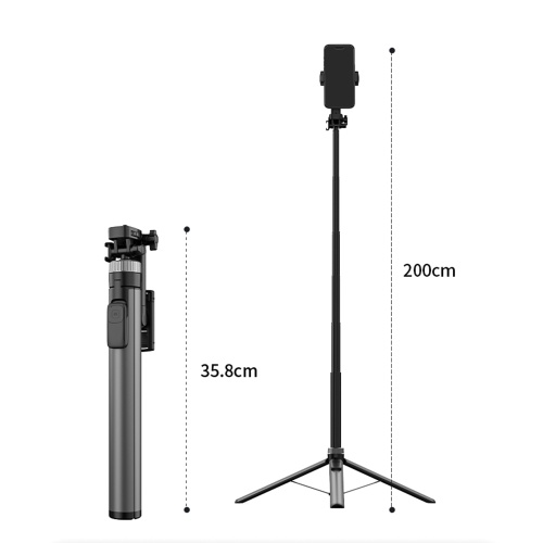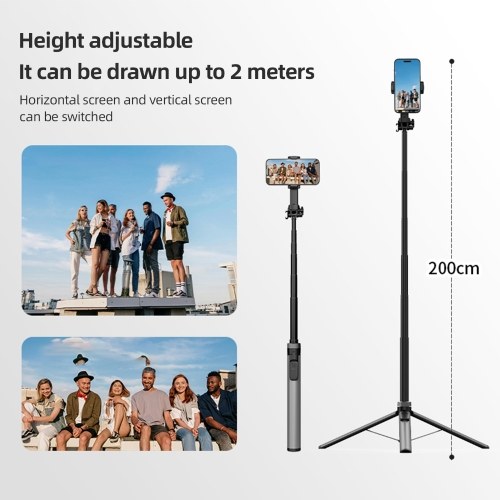 Extendable Design: The selfie stick tripod for phone has an aluminum alloy tube that can extend to provide a wider view. It can reach a maximum height of 200cm/78.7in, offering flexibility and versatility.