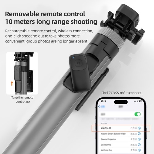 Wireless Remote Shutter: With a remote shutter, capturing group photos becomes effortless as you can control your smartphone's camera from a distance of approximately 10 meters. There's no need to constantly move back and forth anymore.