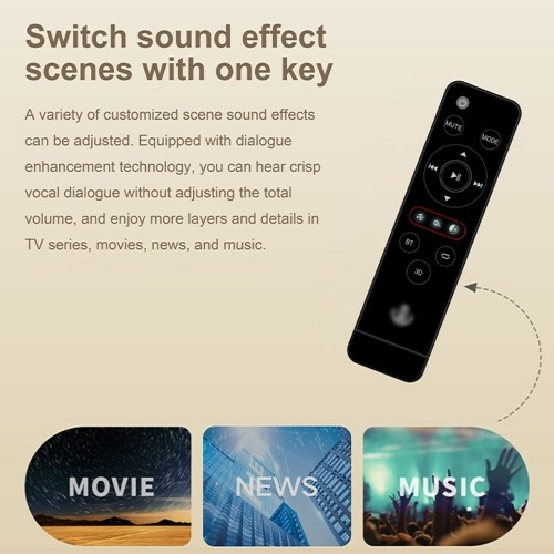 Custom scene sound effects: Can adjust a variety of custom scene sound effects, equipped with dialogue enhancement technology, you can hear clear human voice dialogue without adjusting the total volume, and enjoy more levels and details.