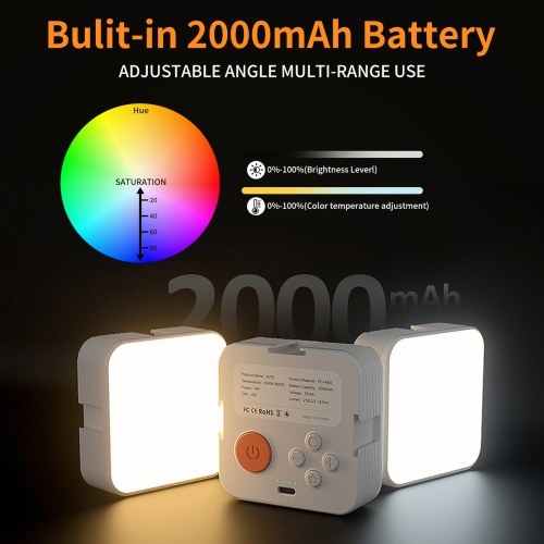 【Long Battery Life】With built-in 2000mAh lithium battery for long working time, the video conference light can be quickly and conveniently recharged via power bank, laptop, power adapter, and more, by using the included Type-C charging cable.