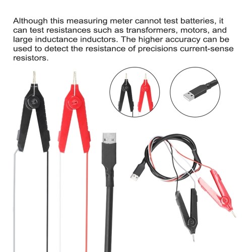 Although this measuring meter cannot test batteries, it can test resistances such as transformers, motors, and large inductance inductors. The higher accuracy can be used to detect the resistance of precisions current-sense resistors.