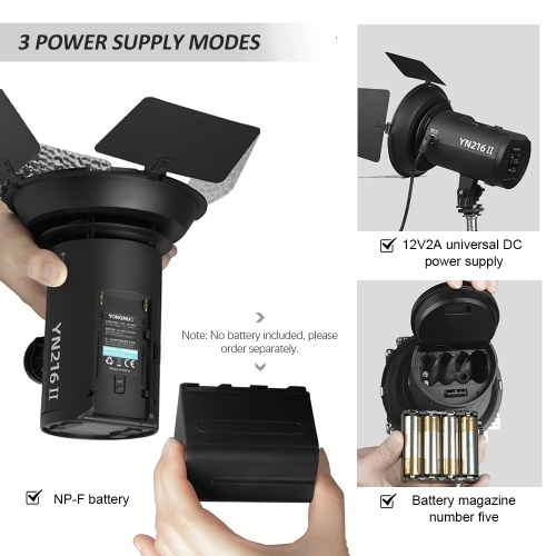 【3 Power Supply Options】This bi-color LED video light comes with three power supply choices: 8 * AA batteries, NP series batteries and from DC adapter. You can choose the power supply method that most suits your needs.