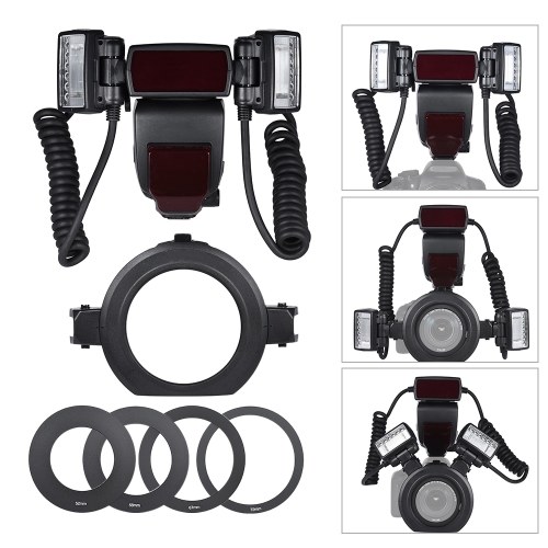 Install the adapter ring on the front of the lens,then install the flash tube on the adapter ring.