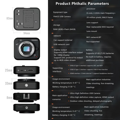 【High-Quality Sensor】The USB camera is equipped with a 4/3 CMOS sensor, operating on an Android system. This advanced technology ensures high-resolution image capture and superior video quality.