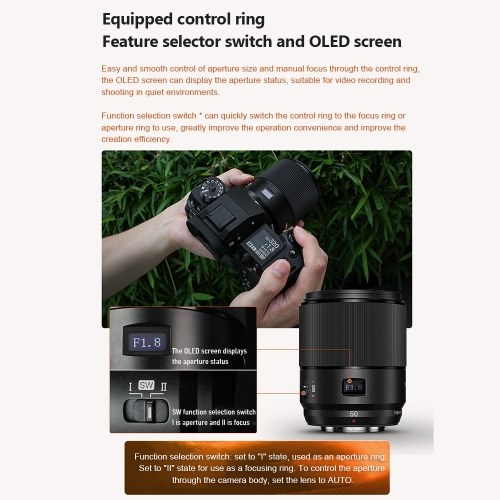 【Auto and Manual Focus】The YN50mm F1.8X DA DSM Pro lens supports both AF Auto Focus and MF Manual Focus functions, providing you with the flexibility to choose the best focus mode for your photography needs.