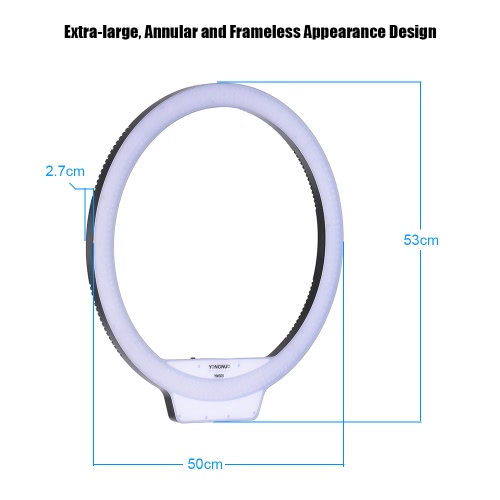 YONGNUO YN608 LED Ring Video Light is a brand new type of LED video light specially designed and made for live video and selfie. YN608 adopts extra-large, annular and frameless appearance design. The annular light source adopted and the special softlight panel equipped with make the front light-filling more even, soft and unshadowed. Dual power support mode meets all kinds of shooting requirements; lighting at any angle helps you to seize catchlights perfectly.