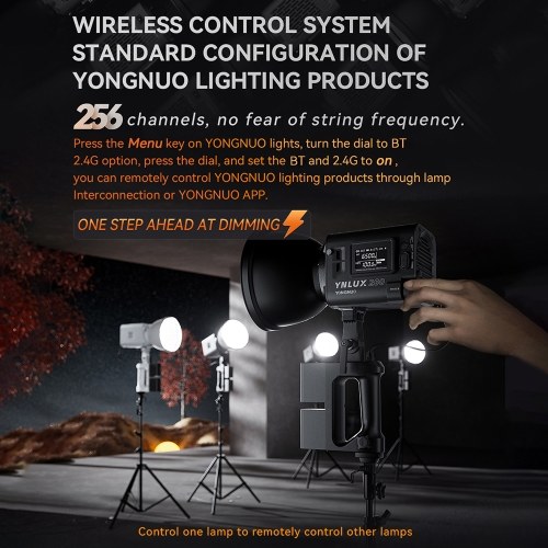 【Wireless Control System】The LED video light comes standard with 256 channels, allowing for seamless remote control of the video light through interconnected lights or the "YONGNUO" APP.
