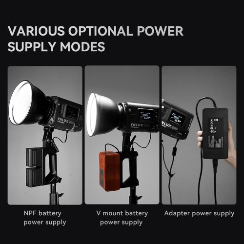【3 Power Supply Options】This dual-color LED video light offers three different power supply options: a V-lock battery, two NP series batteries, or a DC adapter. You have the flexibility to select the power source that best fits your requirements.