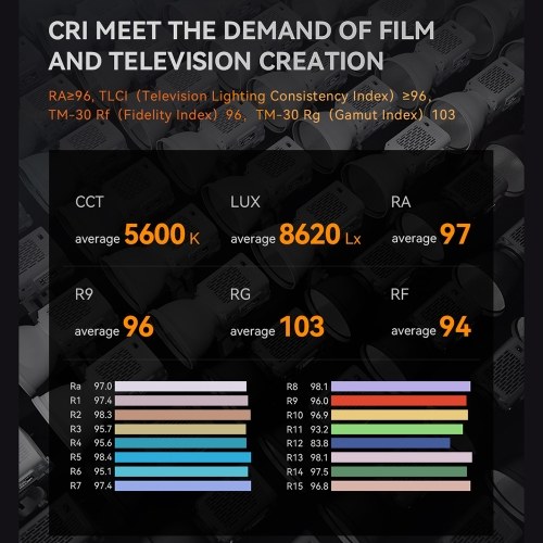 【Intelligent Fan Control System】The LED video light features an intelligent fan control system that measures temperature at a high frequency of 3 times per second. It automatically adjusts the fan speed based on the temperature conditions to achieve a balance between temperature and wind noise.