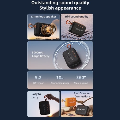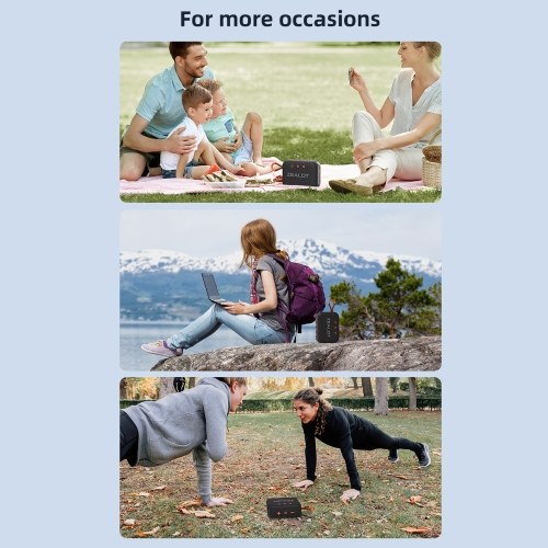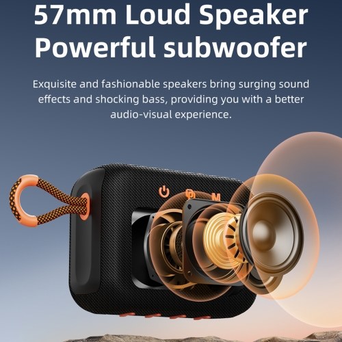 Portable and Waterproof: With an IPX6 rating, this wireless BT speaker is built to withstand water splashes. Take your music anywhere, whether cycling, camping, or enjoying outdoor activities.