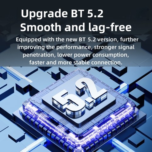 New BT 5.2 Version: Equipped with the new BT 5.2 version, the performance is further improved, the signal penetration is stronger, the power consumption is lower, and the connection is faster and more stable.