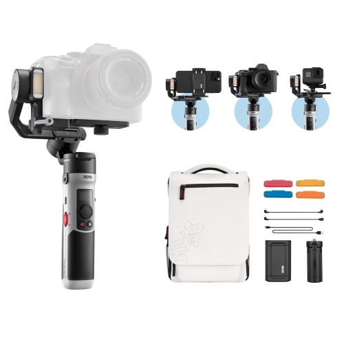 【Small Yet Powerful】Small and portable as a phone gimbal, CRANE-M2S is super light yet strong enough to hold various cameras, like your phones, sports cameras and mirrorless cameras. The 549g super lightweight body, combined with stronger motors and extended axes, makes it a must-have for filmmakers.