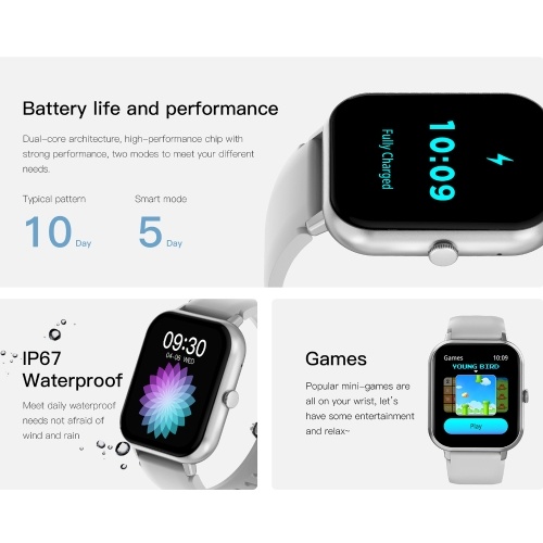 Battery Life and Performance: Dual-core architecture, high-performance chip, strong performance, two modes to meet your different needs, typical mode for 10 days, smart mode for 5 days.