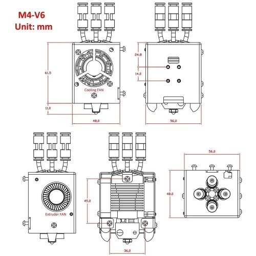 Name: the 6th version 4-IN-1-OUT mix color hotend assembly